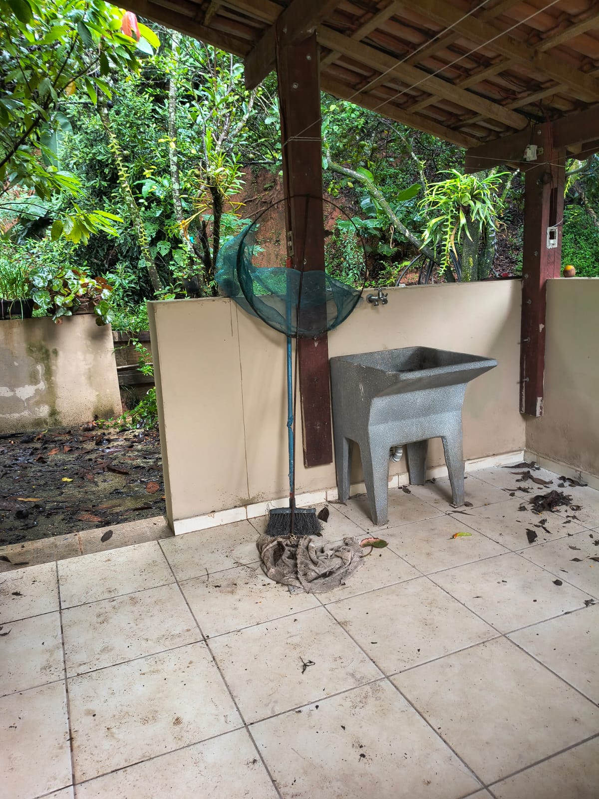 wc social, lavanderia coberta , alguns pês de fruta e Horta